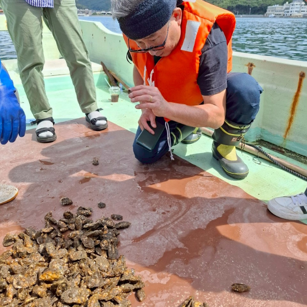畜養を経て仕上がった牡蠣を収穫し、分かち合い、味わいます。