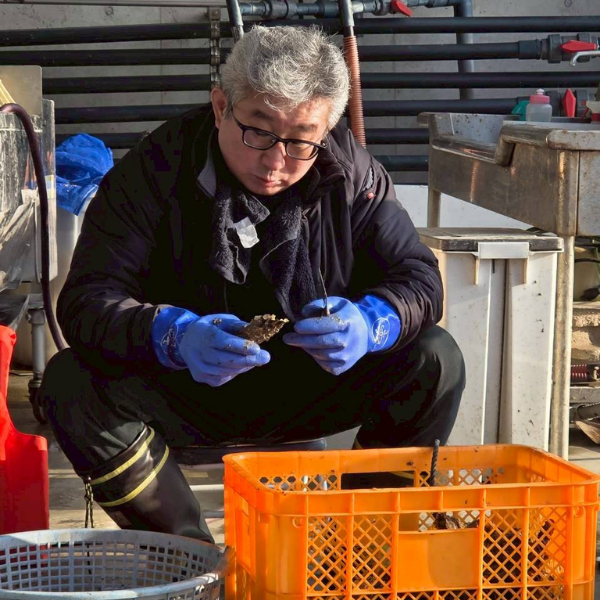 この工程を経て、牡蠣は身入りを高めるための畜養期間に入ります。