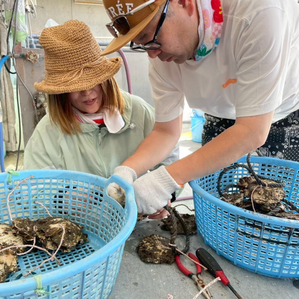 気心の知れた二人で、牡蠣づくりの体験を共有するコースです。